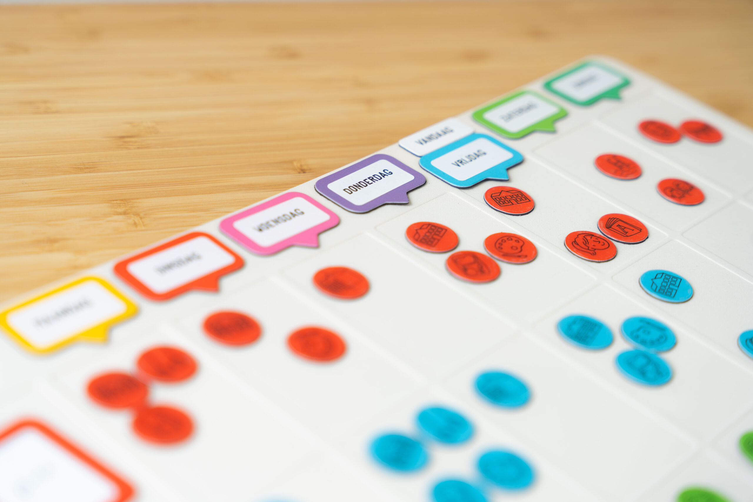 Met heldere pictogrammen en kleurrijke dagmagneten maak je de week visueel overzichtelijk. Zo ziet je kind in één oogopslag of het vandaag school, gym, zwemles of een feestje is. Dat geeft rust en vertrouwen — ook bij spannende momenten, zoals een bezoek aan de tandarts.